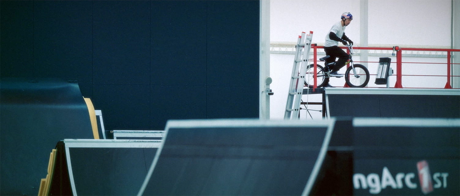 BMXライダーの動体をモニタリングするセンサーとカメラをパーク内に設置し