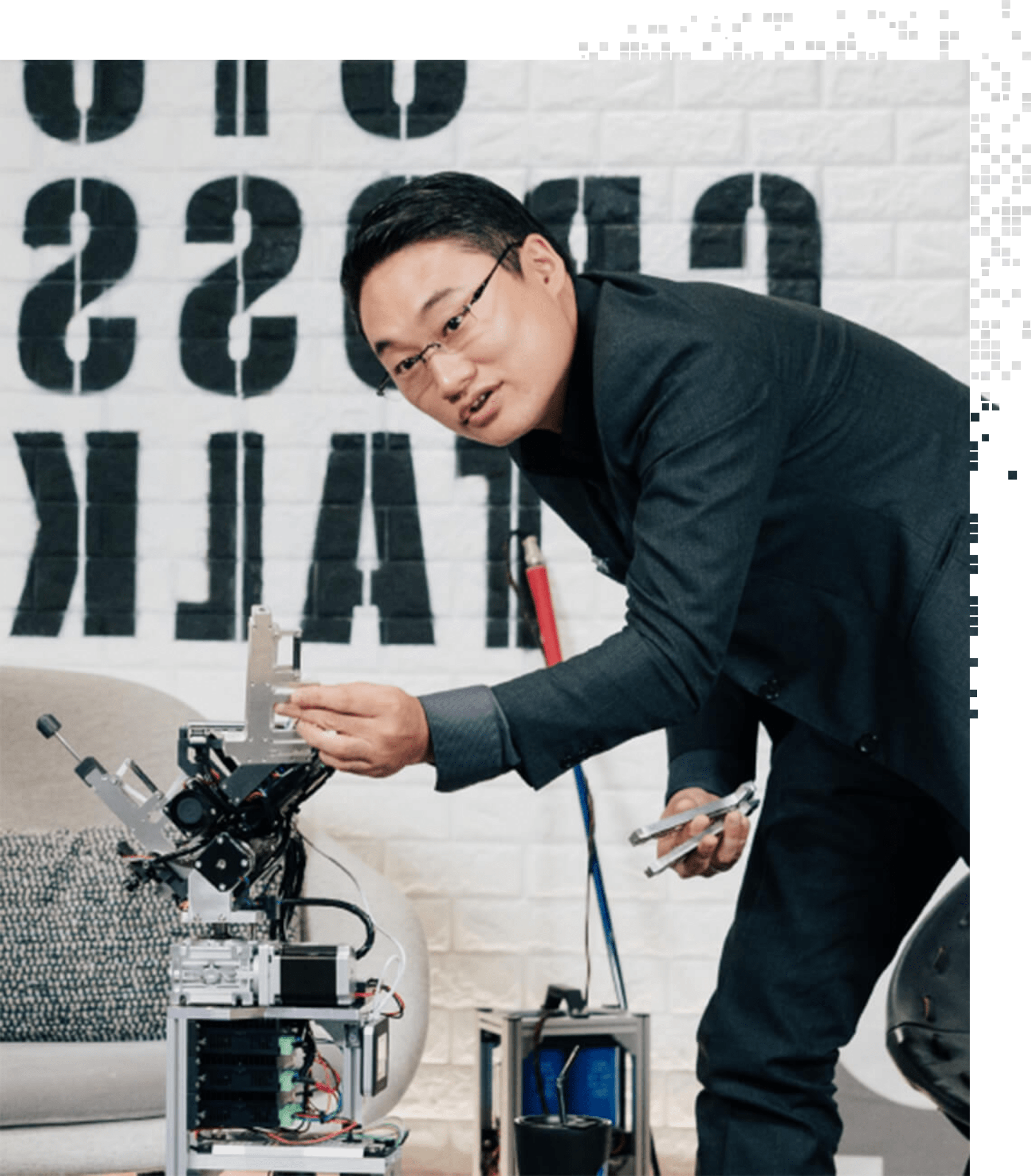 1981年東京生まれ。大学時代にはスーパーコンピュータを駆使した遺伝子解析に打ち込み、遺伝子操作プログラムで特許を取得する。SIerにて大手企業向け生産管理パッケージシステムの開発を経験したのち、ベンチャー企業に転職。自ら高品質パッケージ製品を開発し、営業から開発まで幅広く取り組む。2010年にウイングアーク(現ウイングアーク1st)に入社後は製品開発をメインに手掛け、2016年にウイングアーク1st執行役員CTOに就任。2021年より現職。最近の趣味は機械工作、金属加工。2021年には自社主催のビジネスイベントにて、製品デモとして自らが開発した「勉強中にあくびをした息子の動きを自動追尾して口にミントタブレットを放り込む装置(中段右写真)」を発表。